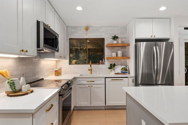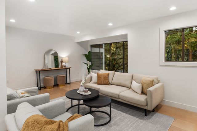 Welcome to Dogwood Lane. A quiet community of 10 townhomes, ideally located on the edge of Enatai and just minutes to all that Bellevue has to offer. Completely renovated interior from top to bottom with over $200k of impressive features. Gorgeous oak floors, redesigned kitchen and bathrooms, upgraded appliances, and designer finishes throughout. Vaulted ceilings and an open floorplan with walls of windows allows maximum natural light amongst nature. Expansive 350sqft deck, plus an attached two-car garage with storage and EV charger. Well-run HOA with no rental cap, pets allowed, and W/S/G included. Just minutes to DT Bellevue, light rail, I-90, and many parks. Six-month lease minimum. Available now!